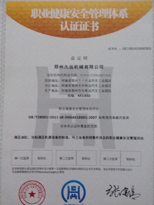 職業(yè)健康安全管理體系認證證書